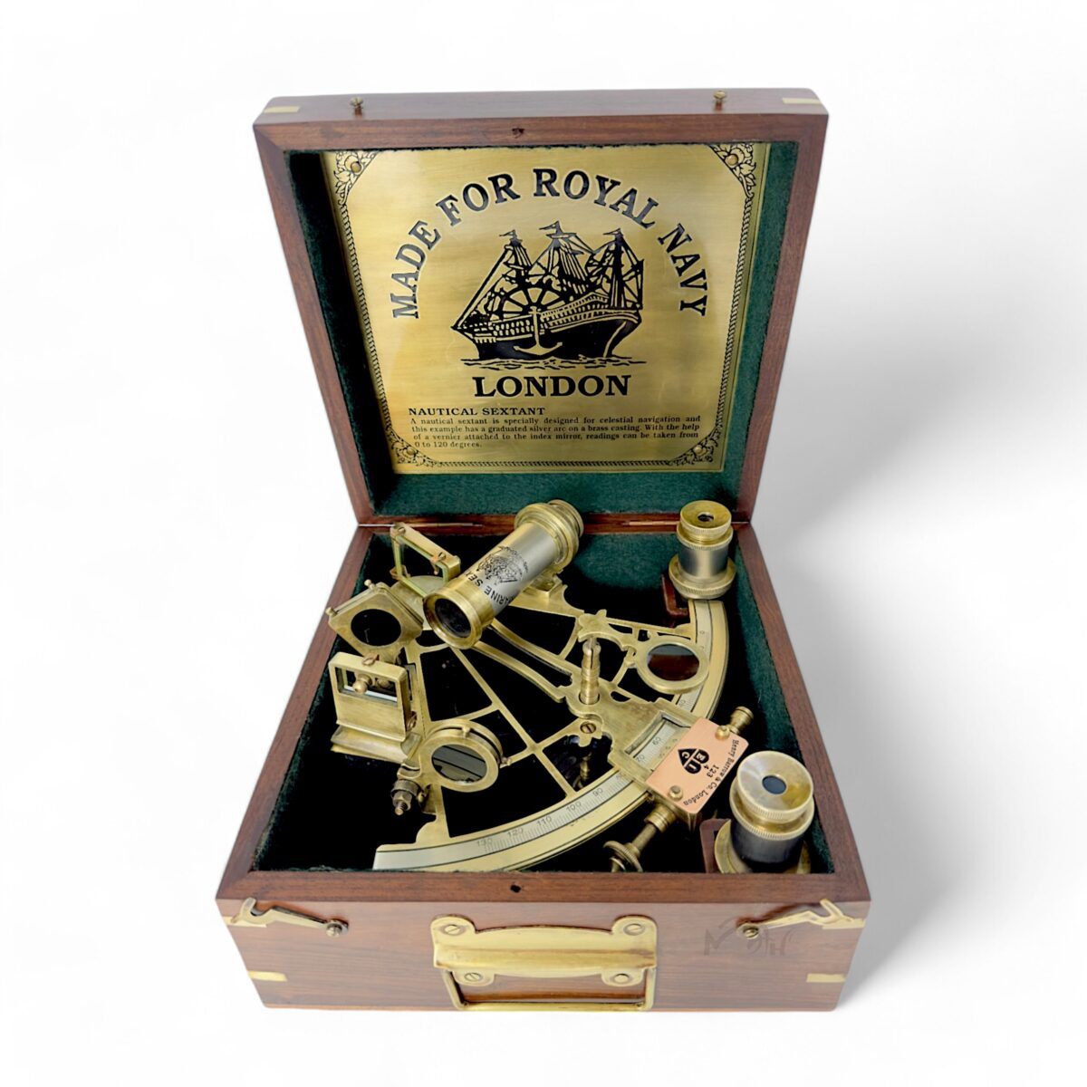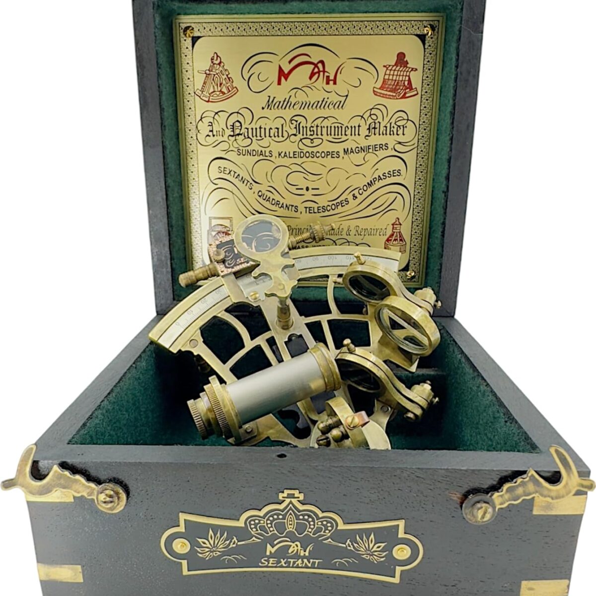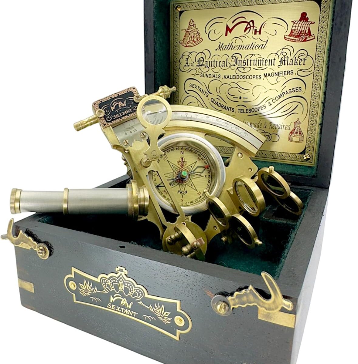 Brass Ship History Sextant Handmade Gift for Father’s Day, Birthday, Anniversary, Baptism, Partner, Best Men, Graduation, Christmas, Vintage Style Hardwood Box Home Décor Add Your Treasure Gift