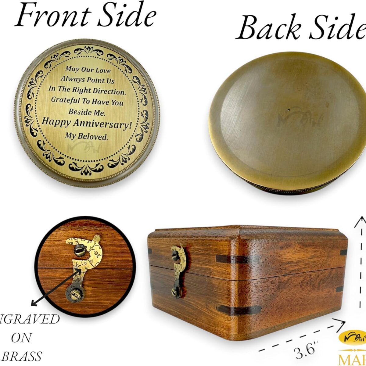 MAH Anniversary Pocket Sundial Compass Gift for Him or Her – Unique Gift Ideas for Husband or Wife, Sundial Clock with Chart for Guidance; Men Wedding Anniversary 50th 40th 25th 20th 1st Year Celebration