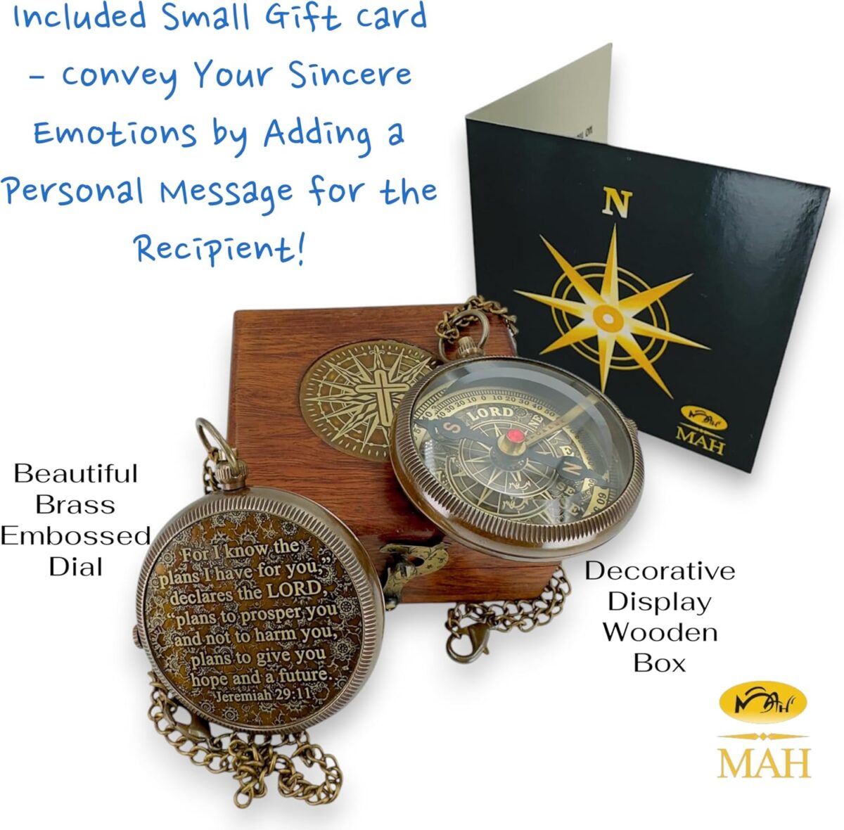 For I Know the Plans – Jeremiah 29:11 Brass Compass with Embossed Dial & “LORD” as North, Christian Gift for Graduation, Baptism, Confirmation, Pocket Keepsake for Boys, Girls, Adults, Religious gifts
