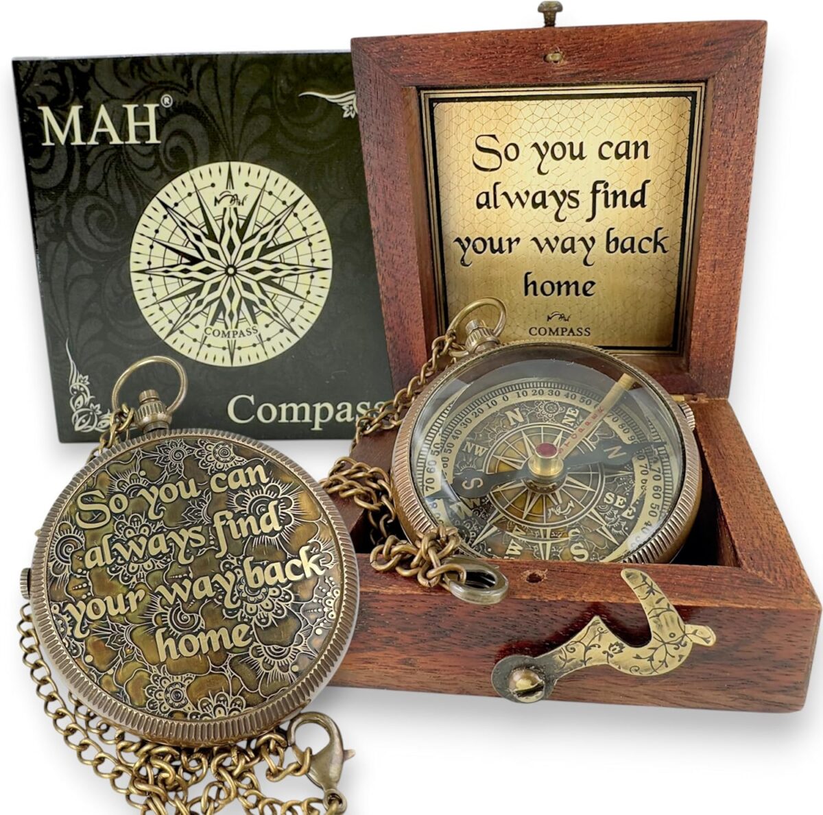 Handmade Brass Compass – “So You Can Always Find Your Way Back Home” or “Back to Me” Quote Gift for Son, Daughter, or Partner – Romantic Gift or Family Keepsake for Graduation, Travel, Farewell gift (Copy)