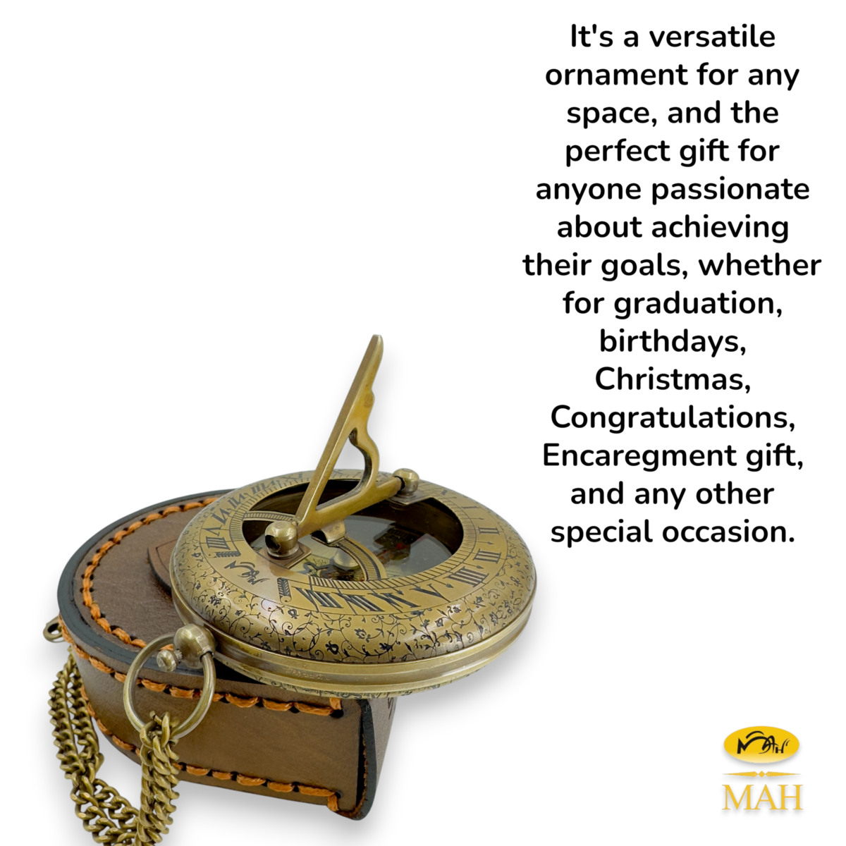 The MAH Composite Dial Design™ represents the distinctive branding of Marine Art Handicrafts and identifies the source of this sundial compass.