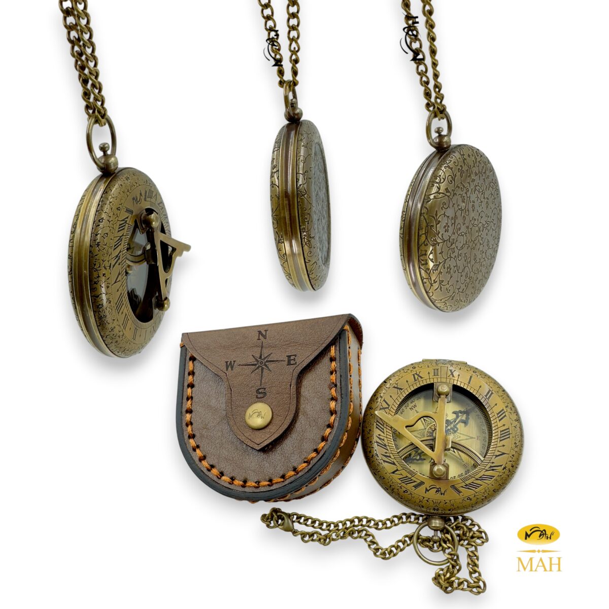 - 🧵 Hand-Stitched Leather Case with Chain – Comes with a durable leather case featuring neat hand stitching, secure snap closure, and matching brass chain for safe pocket carry or elegant display.