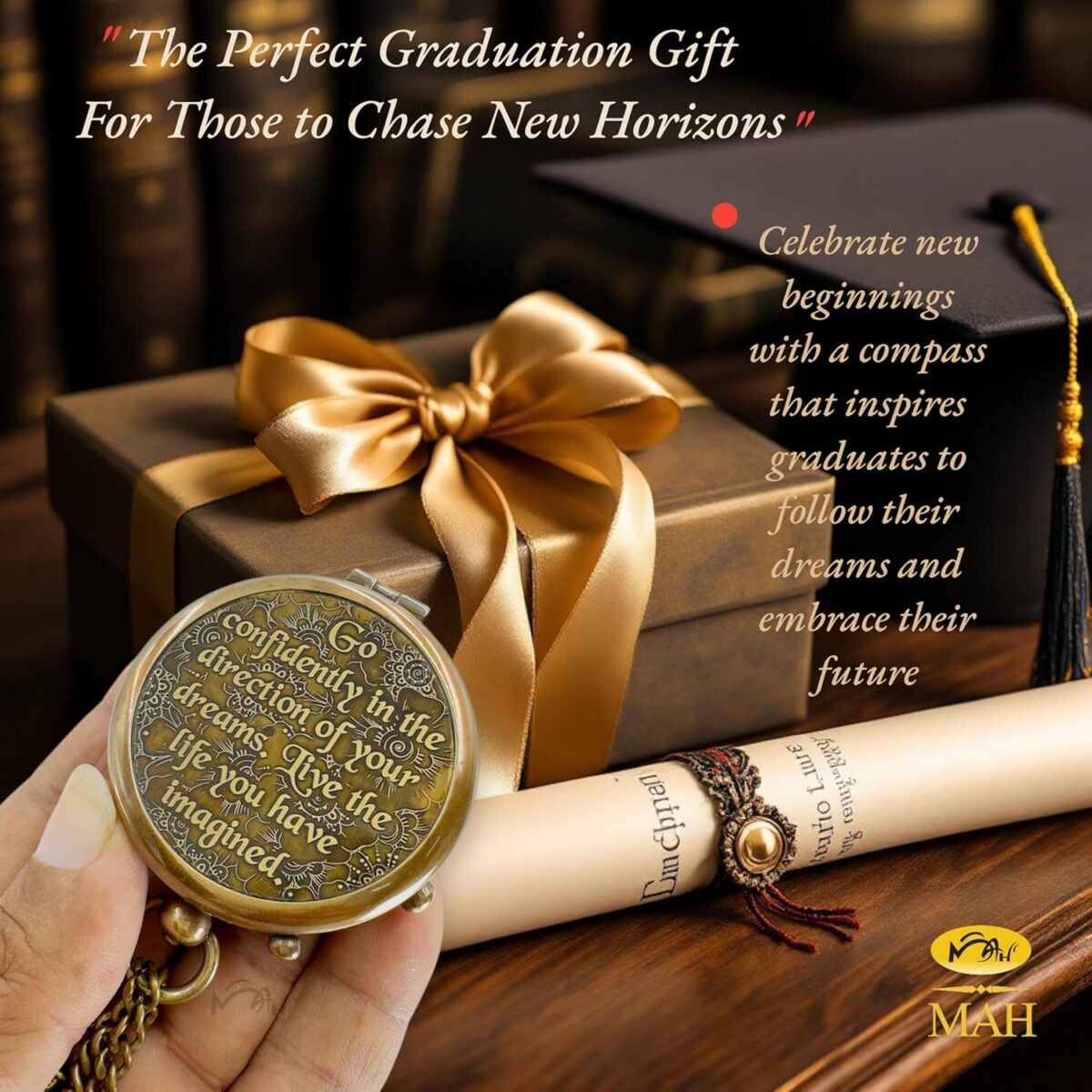 True North Compass – Go Confidently in the Direction of Your Dreams – Embossed Brass Compass – Graduation, Confirmation, Birthday, Motivational Gift for Him, Her, Students, Boys, Girls, High School