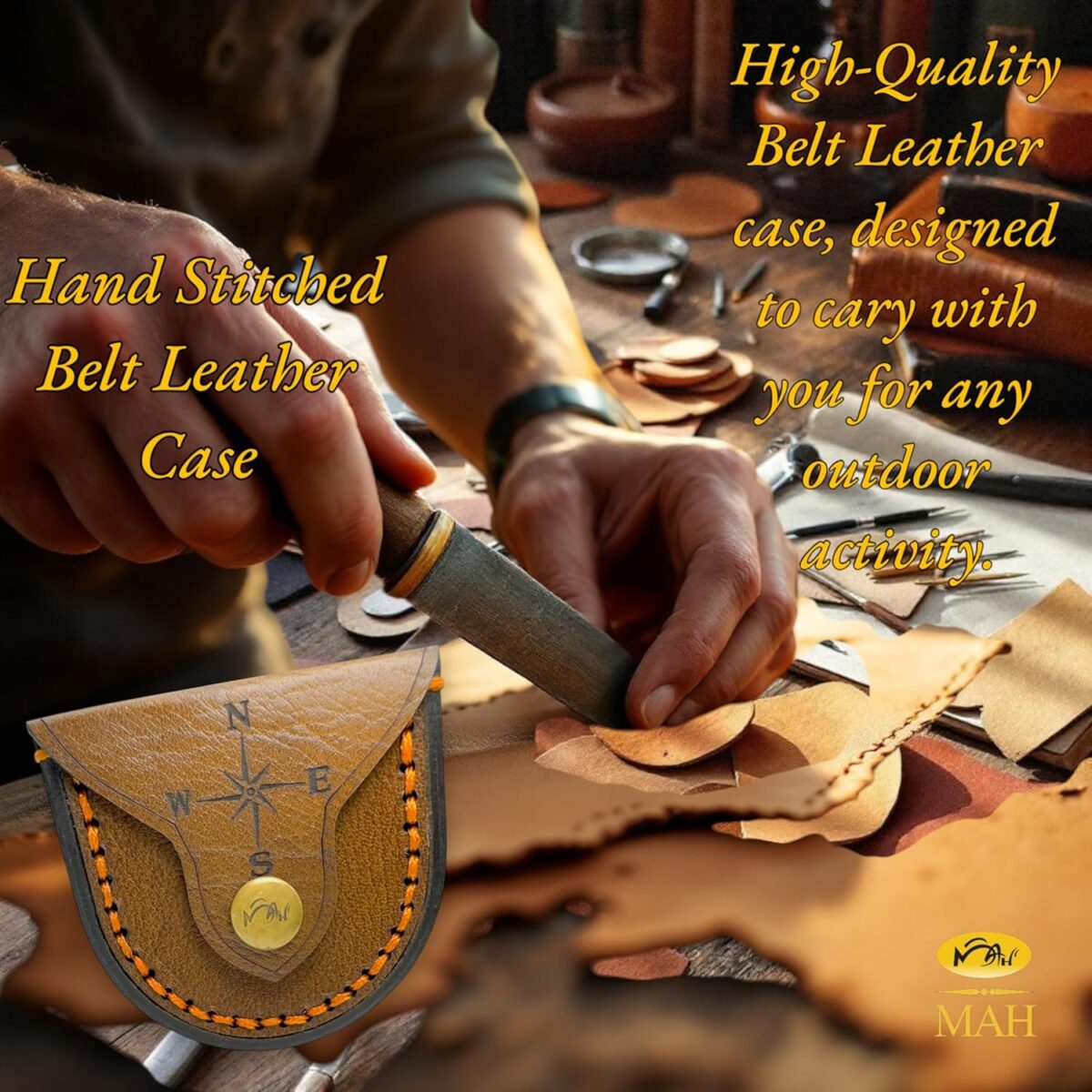 👜 Leather Belt Case with Loop – Comes with a hand-stitched leather case engraved with a compass design and fitted with a sturdy belt loop for easy outdoor carrying.