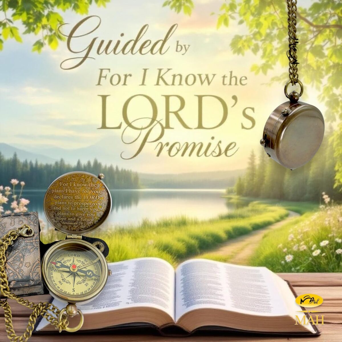 🌟 Guided by the LORD’s Promise – “For I know the plans I have for you…” This embossed dial compass replaces North with “LORD,” reminding us that true direction comes from divine purpose.