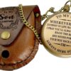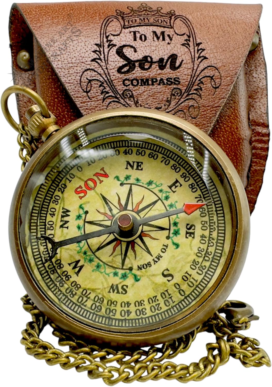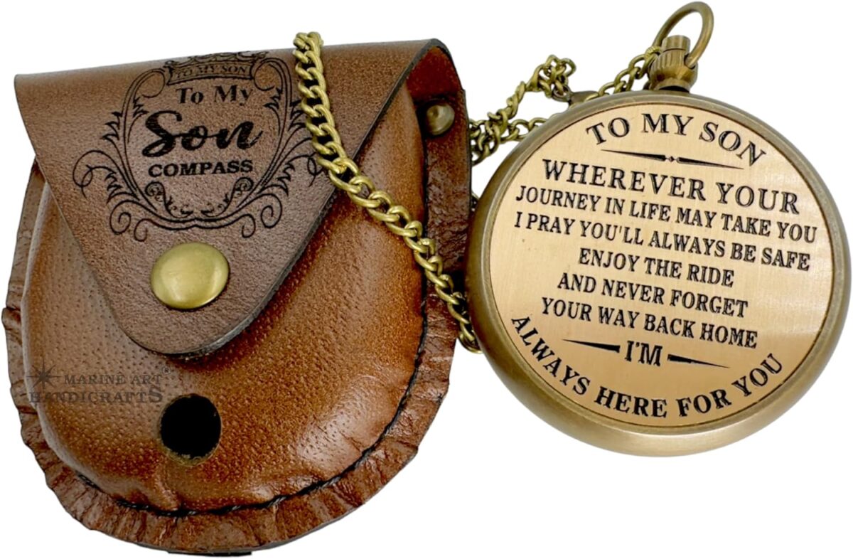 Give your son a timeless symbol of love, direction, and strength with this handcrafted brass compass. Thoughtfully designed as a meaningful keepsake, it features an inspiring engraved quote on the back — a message meant to guide and encourage him through life’s journey. Whether it’s graduation, birthday, Christmas, or any special milestone, this compass carries a deep emotional connection from parent to son. The compass showcases a vintage paper dial enclosed in a solid brass body, blending classic aesthetics with practical use. Its engraved leather pouch adds a touch of elegance while making it easy to carry on adventures or display as a keepsake. Each set comes complete with a brass chain and premium brand packaging, making it ready to gift straight out of the box. This isn’t just a compass — it’s a heartfelt reminder of your unwavering love and support, wherever his path may lead.